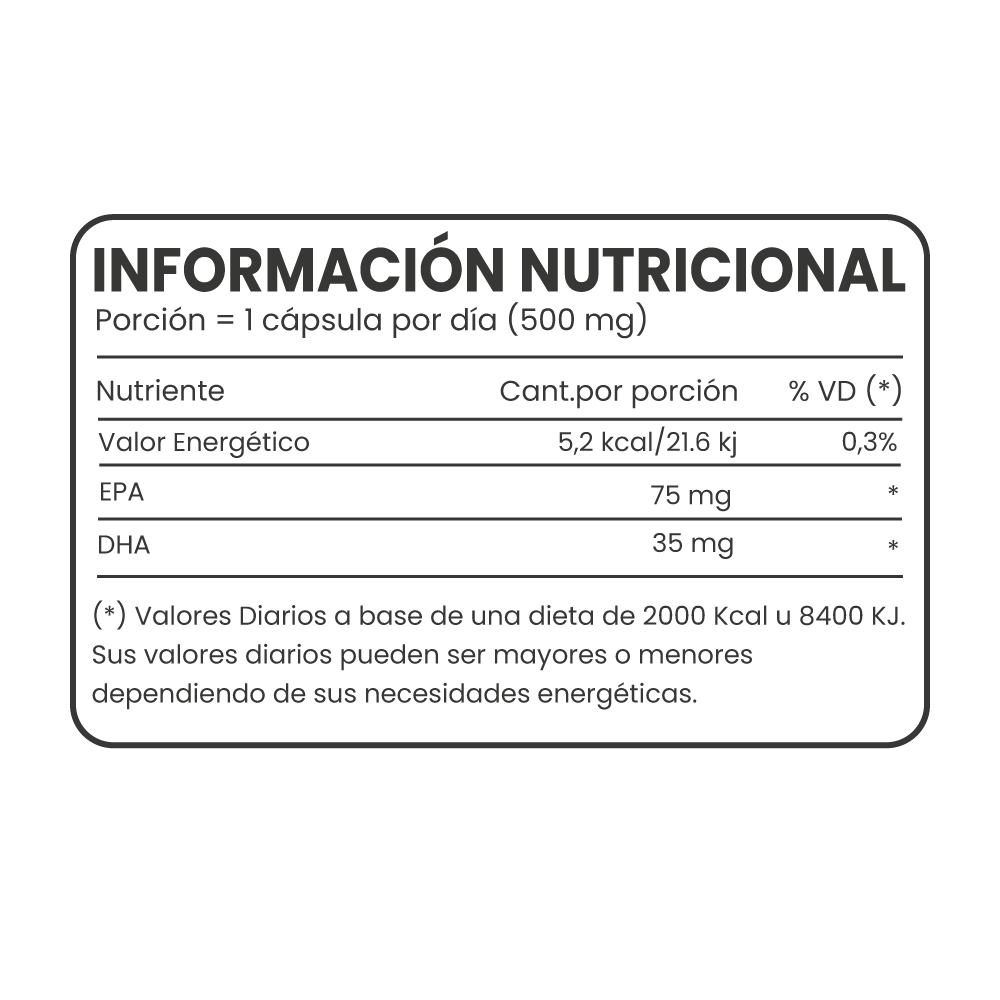 - Alta biodisponibilidad gracias a los fosfolípidos que permiten mejor absorción que el aceite de pescado.