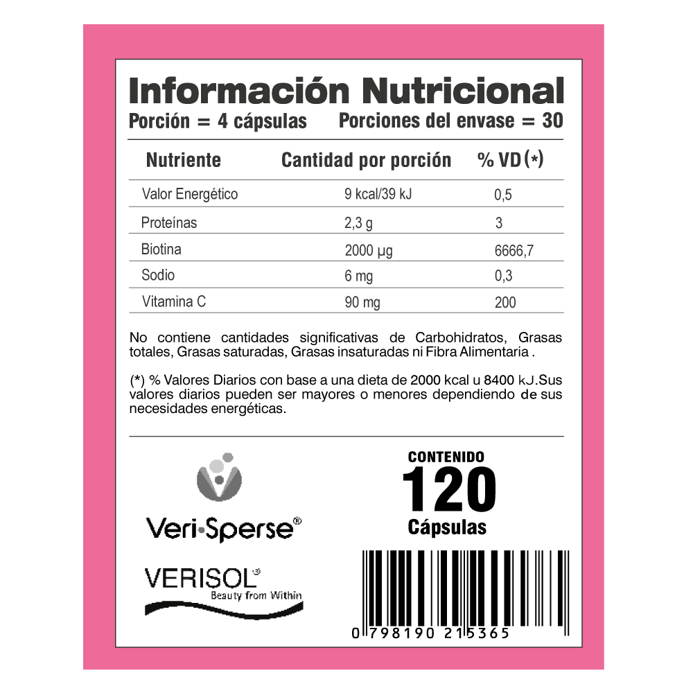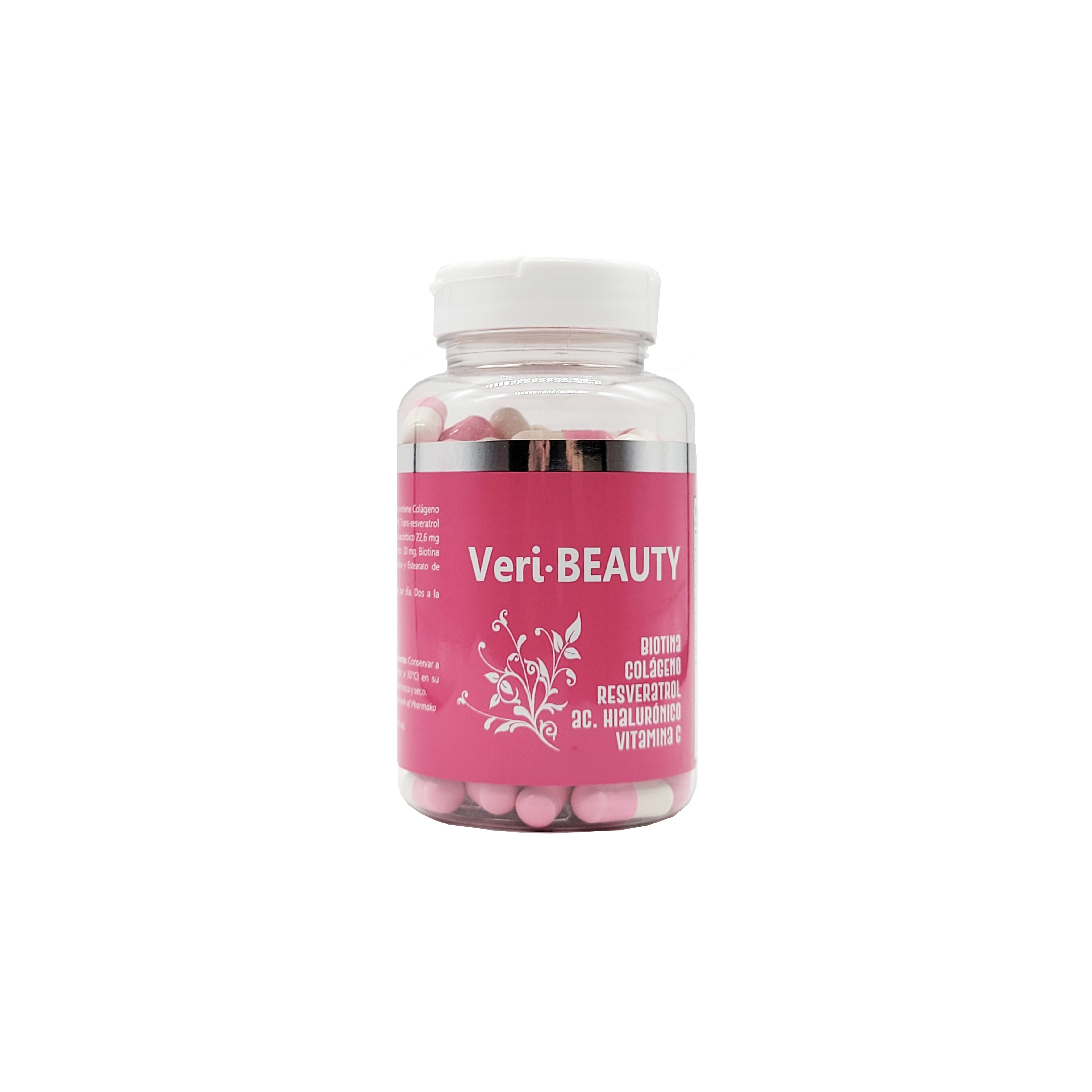 Veri-BEAUTY es un suplemento diseñado para realzar tu belleza desde el interior. Con una fórmula que incluye biotina, colágeno, resveratrol, ácido hialurónico y vitamina C, este producto apoya la salud de tu piel, cabello y uñas. Cada frasco contiene 120 cápsulas fáciles de tomar, perfectas para incorporar en tu rutina diaria de cuidado personal.